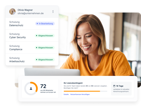 Steigere das Bewusstsein deiner Mitarbeiter in den Bereichen Cyber Security, Datenschutz, Compliance und Arbeitsschutz – mit Inhalten, die nicht nur hängen bleiben, sondern nachhaltig wirken. Immer inklusive passendem Zertifikat.